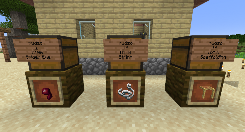 Pudzo has taken the output of his spider farm to market, selling spider eyes and string. He also sells scaffolding made from the string.